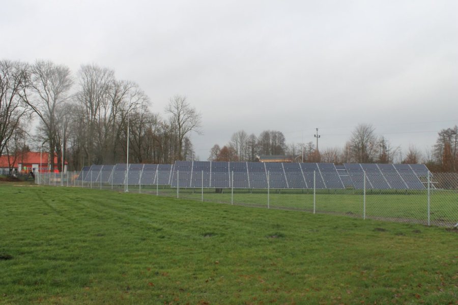 28. Zbudowano z dofinansowaniem z RPO instalacje fotowoltaiczne na budynkach szkół w Rozogach, Klonie i w Dąbrowach oraz na oczyszczalni ścieków w Rozogach.