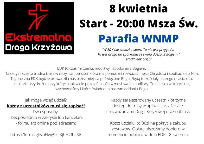 W razie jakichkolwiek pytań i wątpliwości proszę kierować się do ks. Daniela Bojarskiego.