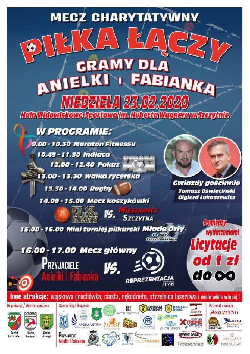 Przed nami kolejna, już trzecia edycja meczu charytatywnego „Gramy dla...”. Tym razem organizatorzy dochód z wydarzenia chcą przeznaczyć na leczenie i rehabilitację 14-letniej Anielki Śpiewak z Rozóg i 6-letniego Fabianka Jarząbka ze Szczytna. Szczegóły na plakacie.
