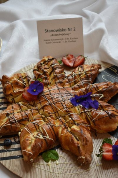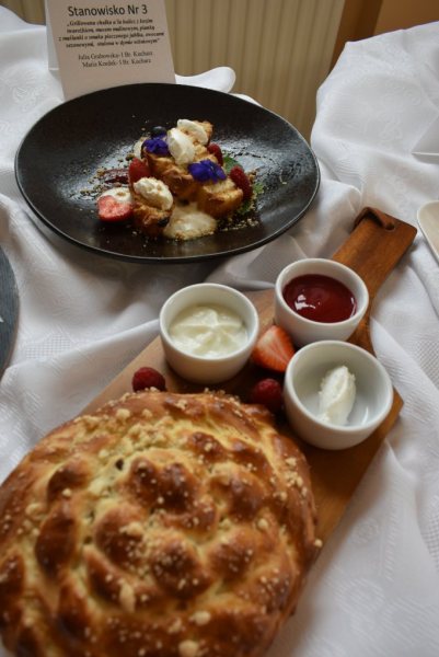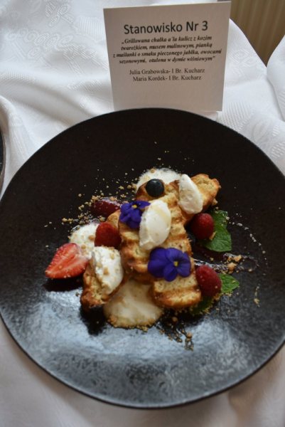 Grillowana chałka à la kulicz z kozim twarożkiem, musem malinowym, pianką z maślanki o smaku pieczonego jabłka, owocami sezonowymi, otulona w dymie wiśniowym – urzekła jurorów VII Edycji Wewnątrzszkolnego Konkursu Cukierniczego „Zakręcone drożdże” w Zespole Szkół nr 2 w Szczytnie. Tę słodkość przygotowały Julia Grabowska i Maria Kordek. I to one wygrały konkurs. Opiekunem uczennic jest znakomity kucharz i pedagog Michał Denesiuk.