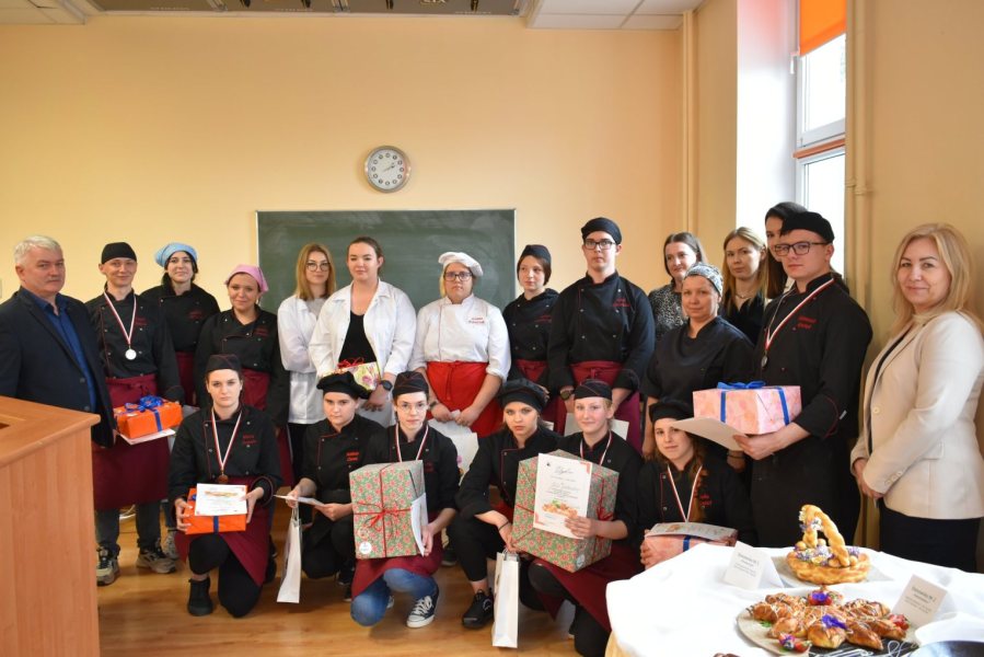 Konkurs przeprowadzono w Zespole Szkół nr 2 w Szczytnie w minioną środę (25 maja). Celem szkolnych zmagań było doskonalenie umiejętności cukierniczych wśród uczniów nauki zawodu cukiernik i kucharz oraz technik hotelarstwa.