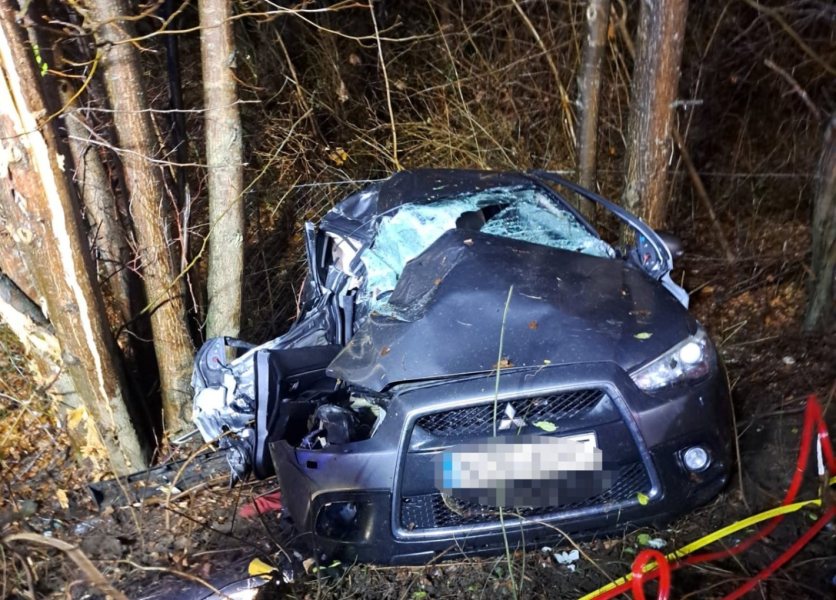 Na drodze powiatowej między Pasymiem a Jedwabnem doszło do poważnego wypadku. Mitsubishi, którym podróżował młody mężczyzna, wypadło z drogi. Kierowca jest ranny. Na miejscu pracują służby ratunkowe.