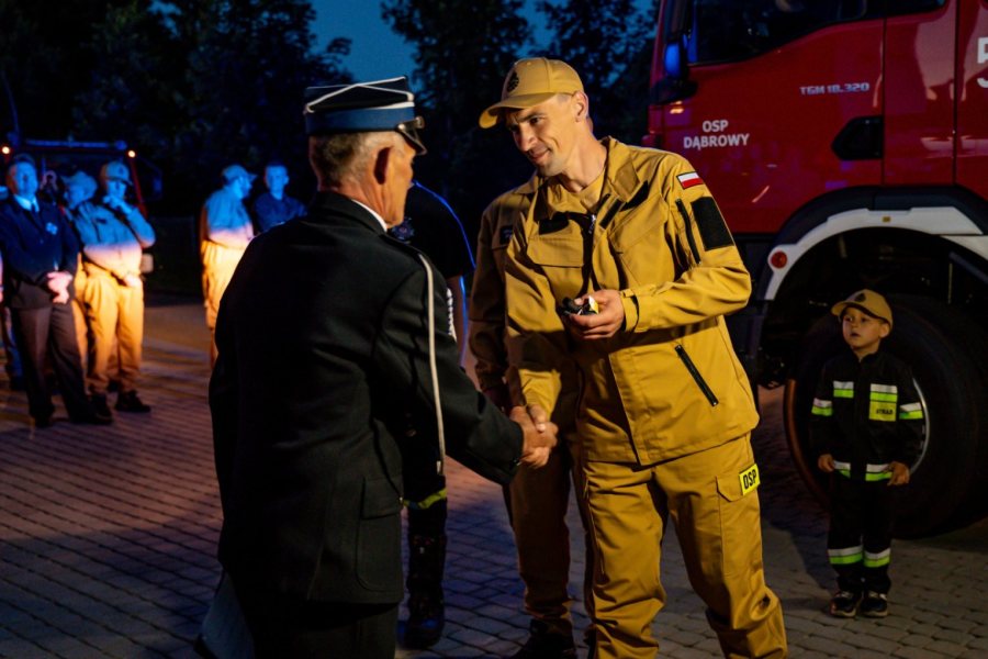 Race, syreny, tłum mieszkańców i łzy wzruszenia. W Dąbrowach druhowie i mieszkańcy przeżyli wielki dzień – jednostka OSP odebrała pierwszy w historii gminy fabrycznie nowy wóz ratowniczo-gaśniczy. Kolumnie na sygnałach towarzyszyły emocje, których długo nikt tu nie zapomni.