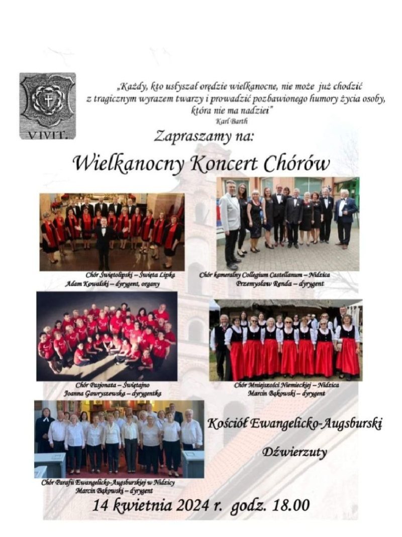 Niedzielny wieczór w Dźwierzutach obiecuje być niezapomnianym doświadczeniem, gdzie słowa Karla Bartha: „Każdy, kto usłyszał orędzie wielkanocne, nie może już chodzić z tragicznym wyrazem twarzy i prowadzić pozbawionego humoru życia osoby, która nie ma nadziei” znajdą swoje odbicie w mocy wspólnie przeżywanej muzyki.