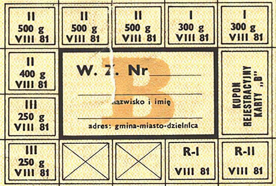 - Od razu wprowadzono ilościowe limity sprzedawanych towarów – wspomina Bogusław Palmowski. I tak na każdą osobę robiącą zakupy, przypadał kilogram soli i makaronu, dwa litry mleka oraz trzy pudełka zawsze poszukiwanych zapałek. Pozostałe produkty nieobjęte reglamentacją można było nabywać w ilości nie większej niż jedno opakowanie, jedna butelka lub 0,25 kg. Całkowicie została wstrzymana sprzedaż alkoholu, a palacze mogli kupować papierosy tylko na kartki. Z czasem reglamentacja obejmowała kolejne towary.