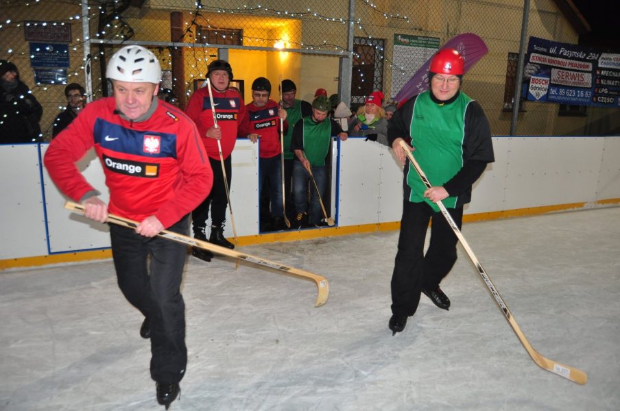 Na łyżwach i kijem hokejowym w ręku pojawili się między innymi starosta szczycieński Jarosław Matłach, burmistrz Szczytna Krzysztof Mańkowski, czy były komendant KP PSP w Szczytnie Mariusz Gęsicki.