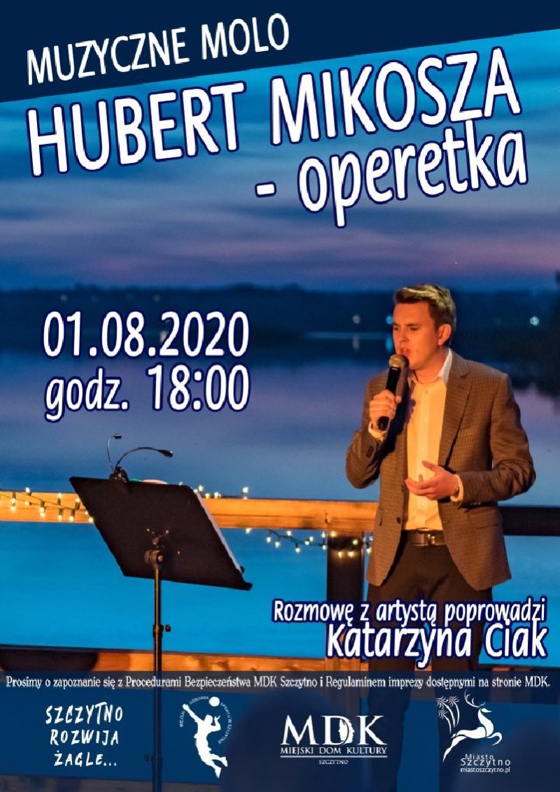 Przed nami kolejny koncert z cyklu „Muzyczne Molo”. W sobotę, 1 sierpnia, w repertuarze operetkowym, wystąpi Hubert Mikosza. Początek wydarzenia godz. 18. Wstęp wolny. Szczegóły na plakacie.