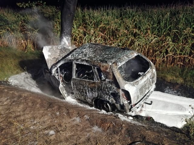 Do dramatycznego wypadku doszło z poniedziałku na wtorek na trasie Rozogi – Występ. Z drogi wypadł hyundai tucson, wjechał do rowu i uderzył w drzewo. Auto niemal natychmiast stanęło w ogniu. Samochodem jechał 69-letni mieszkaniec Ostrołęki oraz jego 40-letnia znajoma.