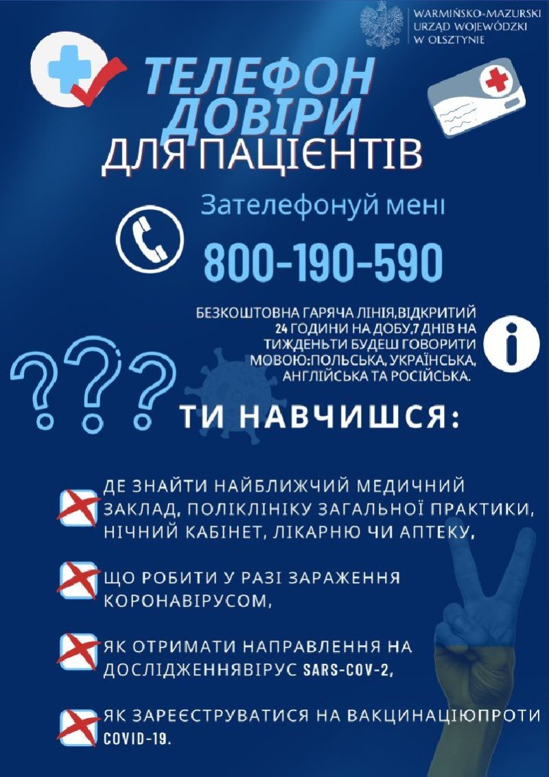 INFOLINIA DLA PACJENTÓW / ГАРЯЧА ЛІНІЯ ПАЦІЄНТІВ.