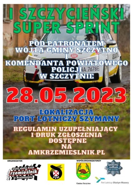 Sporty motorowe wracają do naszego powiatu. W niedzielę, 28 maja na lotnisku w Szymanach (część techniczno-administracyjna) odbędzie się I Szczycieński SuperSprint. Będzie się tam ścigać nawet 40 załóg samochodowych. 10 maja ruszą zapisy. Niemal każdy może wziąć udział w tej rywalizacji. Impreza będzie otwarta dla kibiców. Wstęp za darmo.