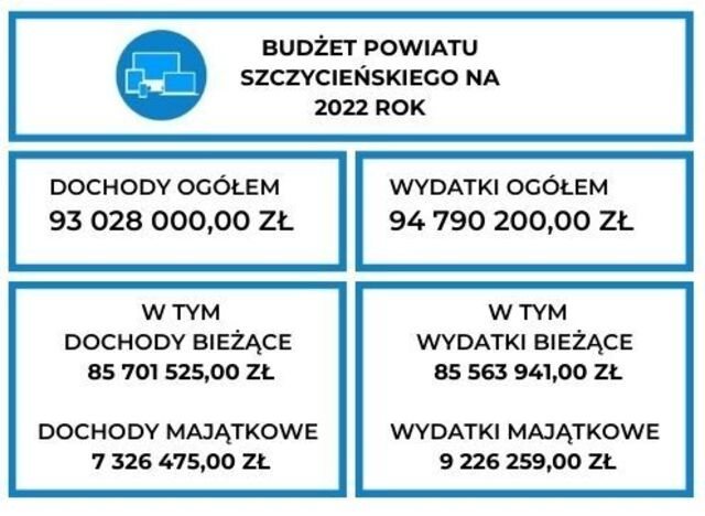 Prezentujemy tegoroczny budżet Powiat Szczycieński. Na inwestycje samorządowcy zaplanowali ponad 9 mln zł. Za te pieniądze chcą utworzyć między innymi: Zespól Poradni Specjalistycznych, punkt świadczenia usług nocnej i świątecznej opieki medycznej, aptekę przy Szpitalu Powiatowym w Szczytnie, przebudować drogę na odcinku Waplewo Dźwiersztyny, rozbudować drogę na odcinku Kolonia Spychowo, czy dofinansować zakup samochodu ratowniczo-gaśniczego dla Komendy Powiatowej Państwowej Straży Pożarnej.