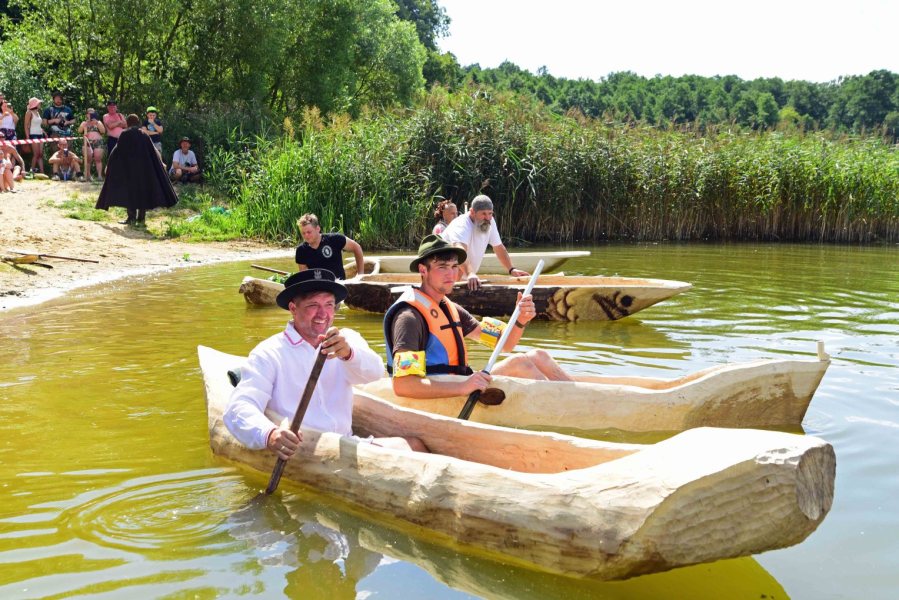 Zwieńczeniem warsztatów były tradycyjne widowiskowe regaty wykonanych dłubanek na Jeziorze Spychowskim. Pięcioosobowe jury oceniało również estetykę wykonania każdej łodzi oraz technikę poruszania się na wodzie. Najszybciej dopłynęła do linii mety drużyna studentów z SITLID SGGW. Z kolei nagrodę za najładniej wykonaną dłubankę otrzymała rodzina Zielińskich z Lubicza, a za sztukę przetrwania na wodzie - grupa rekonstrukcyjna „Synowie Jaćwieży”.