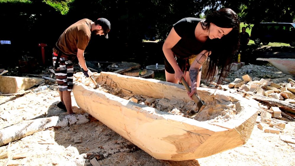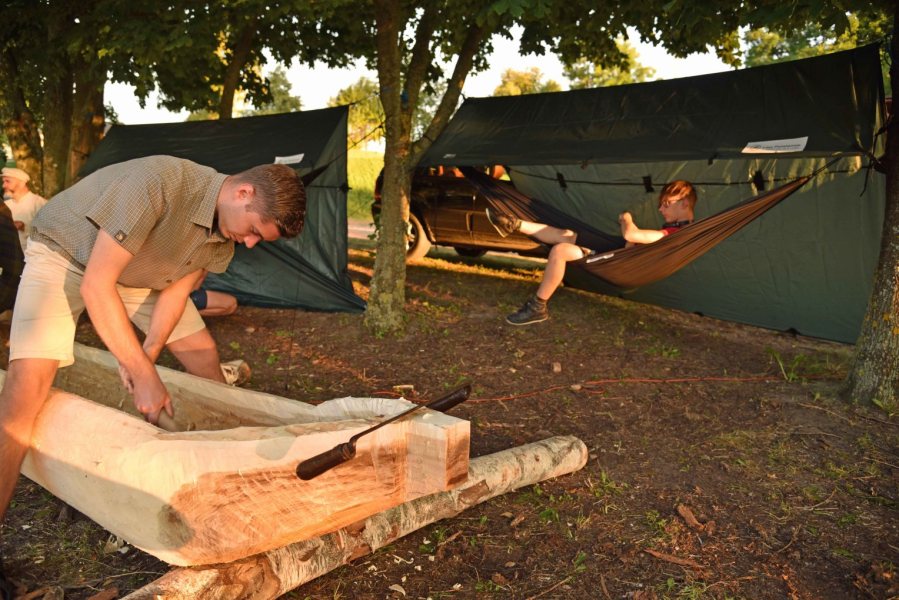Dłubanie łodzi, jak co roku, przebiegało w atmosferze wzajemnej pomocy, wymiany doświadczeń i ciężkiej pracy w sierpniowym upale.