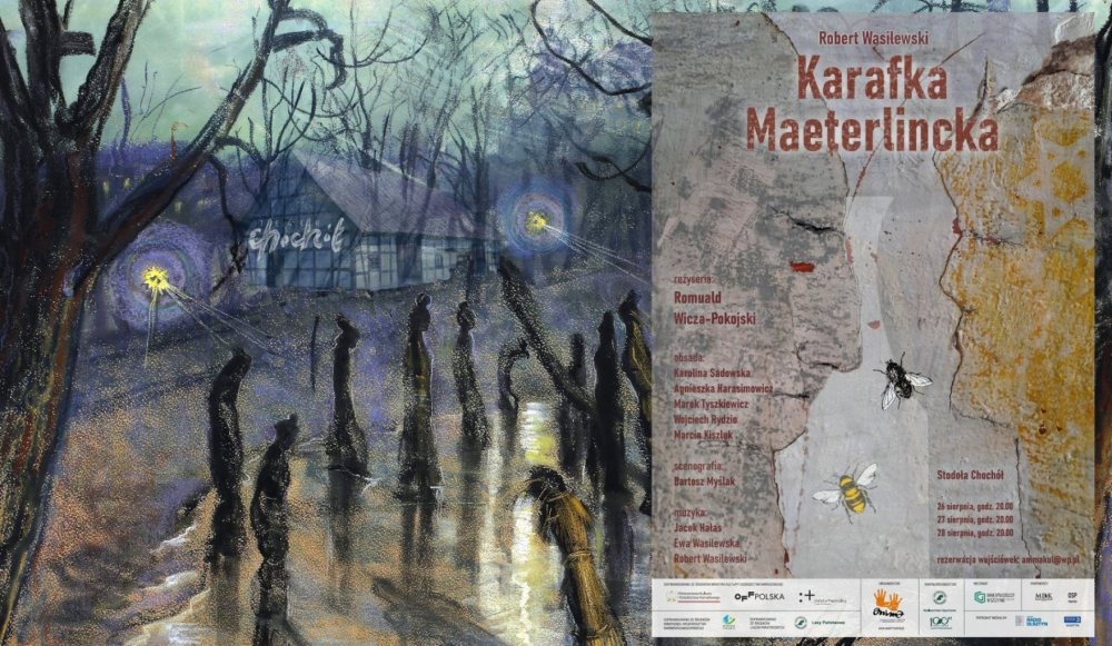 Stowarzyszenie ANIMA zaprasza na premierowe przedstawienia Teatru Chochół pt. "Karafka Maeterlincka" autorstwa Roberta Wasilewskiego w reżyserii Romualda Wiczy-Pokojskiego. Spektakle odbędą się 10 i 11 września o godzinie 19:00. Wejściówki na spektakl są bezpłatne, jednak liczba miejsc jest ograniczona. Rezerwacji można dokonać, odpowiadając na e-mail lub dzwoniąc pod numer telefonu 500 174 294 w godzinach 10:00-15:00 od poniedziałku do piątku.