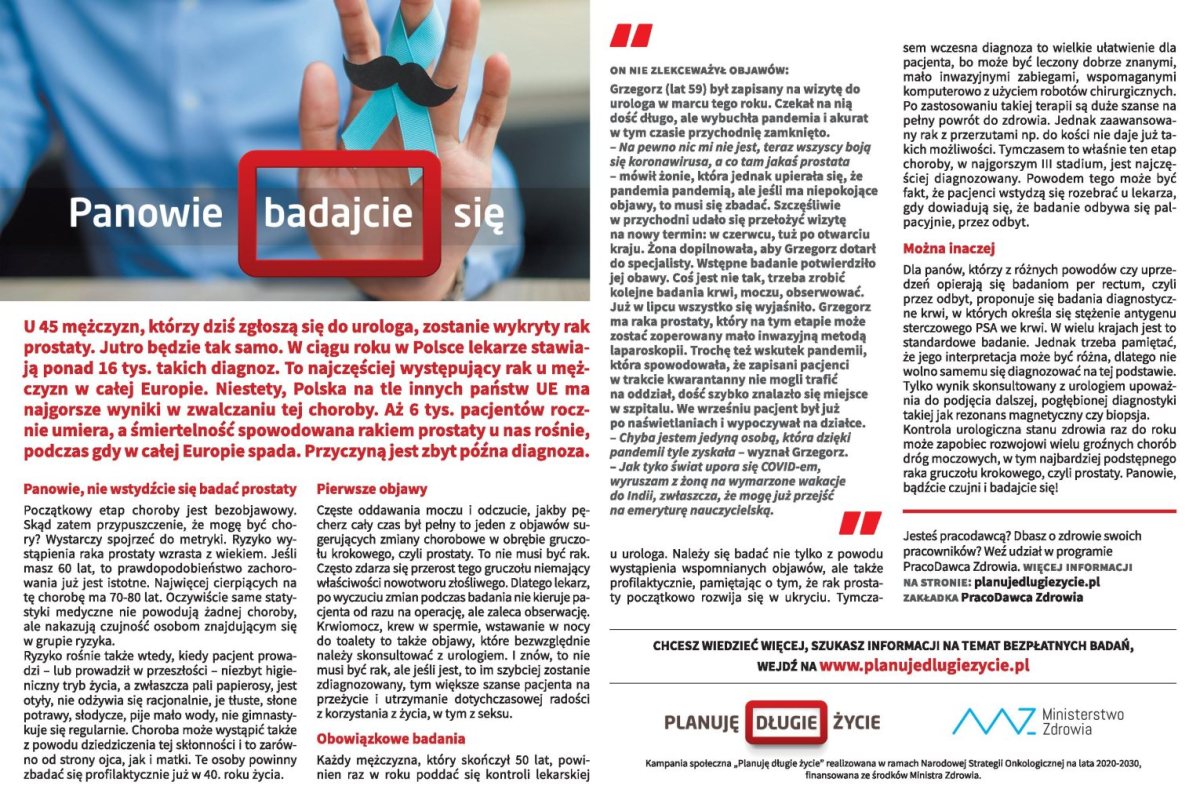 Kampania społeczna „Planuję długie życie” realizowana w ramach Narodowej Strategii Onkologicznej na lata 2020-2030, finansowana ze środków Ministra Zdrowia.