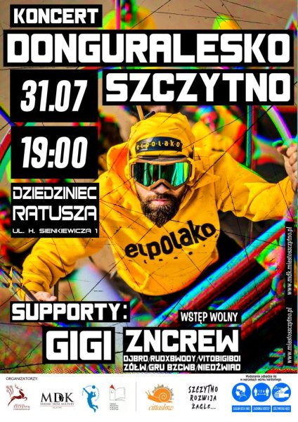 - 31 lipca godz. 19:00 koncert DONGURALESKO na Dziedzińcu Ratusza