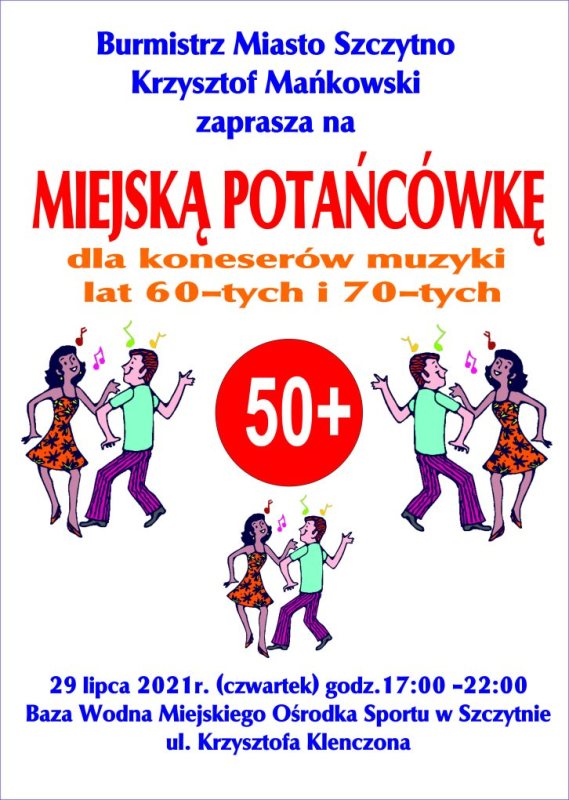 - 29 lipca godz. 17:00-22:00 Miejska Potańcówka dla koneserów muzyki lat 60. i 70. (50+) w Bazie Wodnej MOS-u
