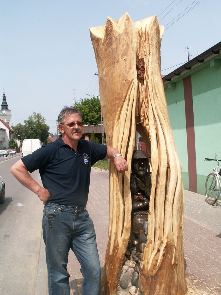 Fot. A mogłoby być, jak w Kadzidle... Na zdjęciu Kazimierz Nurczyk i jego rzeźba.