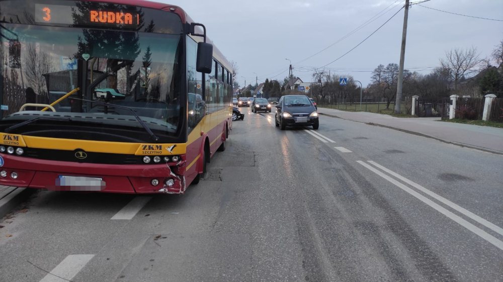 Na ulicy Władysława IV w Szczytnie opel zderzył się z autobusem miejskim. Na szczęście nikt nie ucierpiał.