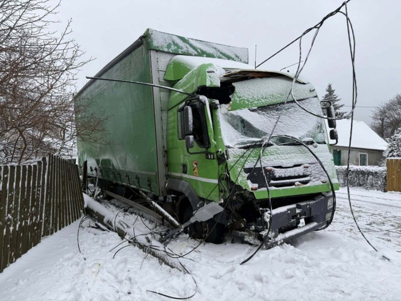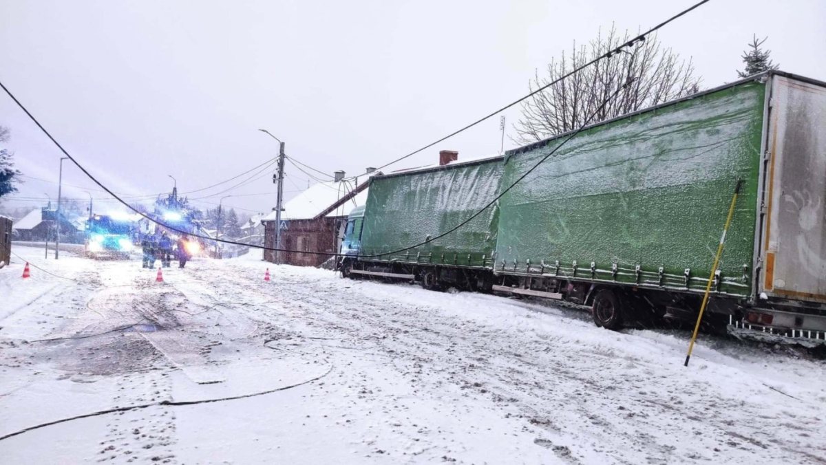 Na ul. 1 Maja w Jedwabnie doszło do kolizji samochodu ciężarowego ze słupem energetycznym, w wyniku której ruch został wstrzymany w obu kierunkach. Na jezdnię opadły zerwane linie energetyczne, co wymusiło natychmiastową interwencję służb.