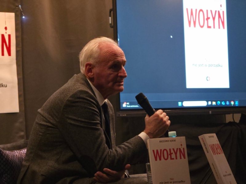 Na spotkaniu w bibliotece odtworzono także fragmenty dokumentu z jego wypowiedziami i relacjami świadków. Artysta mówił o tym, że niezależnie od wszystkiego należy na tak trudne tematy po prostu rozmawiać i podkreślił znaczenie przekazywania prawdy. Mówił też, że źródłem zła, dokonanego na Wołyniu jest to, że ludzie zaczęli dokonywać między sobą podziałów.