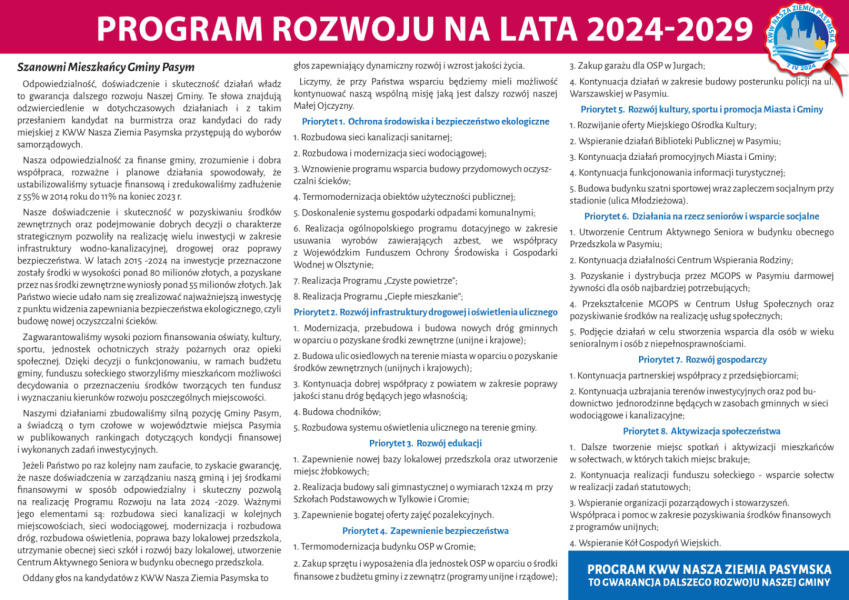 Materiał wyborczy finansowany ze środków KWW Nasza Ziemia Pasymska.