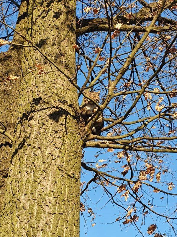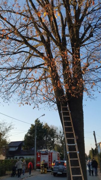 Prawdziwą sensacją stała się akcja ratunkowa strażaków z 1 listopada przy ulicy Reja w Szczytnie. Nasi „firemani” ruszyli na pomoc kotu, który ugrzązł na wysokości 4 metrów na drzewie. Ich zmagania obserwowała spora liczb osób, bo akcja działa się przy głównej drodze prowadzącej na cmentarz.