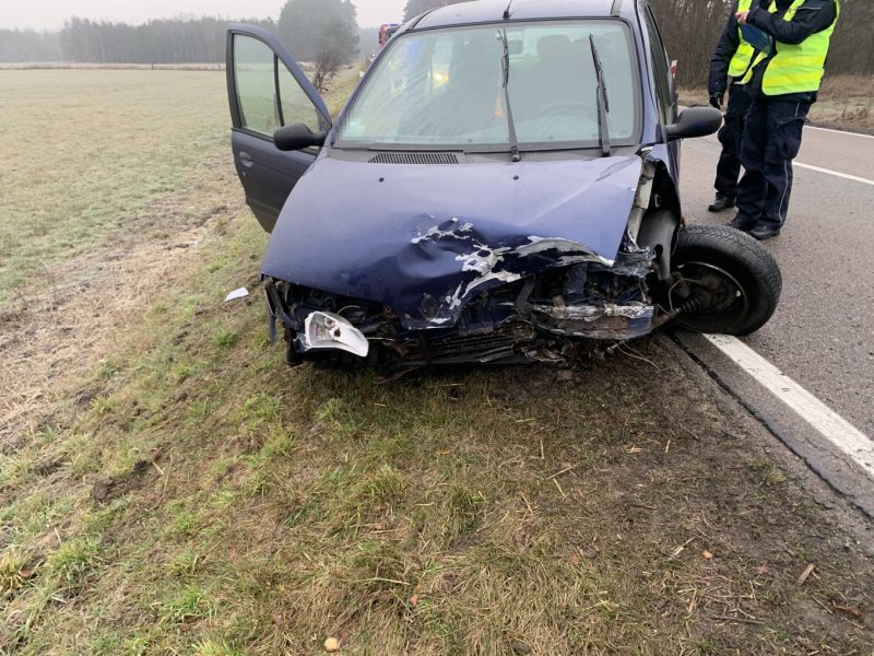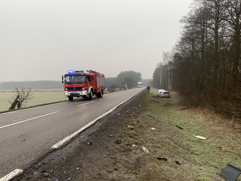 Do wypadku doszło przed godziną 7 na trasie Wielbark – Szczytno. Ze wstępnych ustaleń policji wynika, że 43-letni kierowca jadący renault zaczął nagle hamować, bo zauważył na swoim pasie rowerzystę, który nie miał oświetlenia. Auto wpadło w poślizg i zjechało na przeciwległy pasu ruchu. Zderzyło się z jadącą z naprzeciwka hondą.
