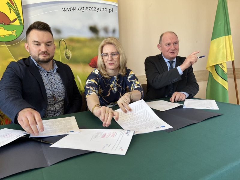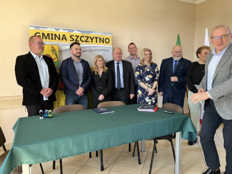 Podczas uroczystego podposania umowy w świetlicy w Nowinach obecni byli między innymi posłanka Iwona Arent, radny sejmiku wojewódzkiego Henryk Żychowski oraz starosta szczycieński Jarosław Matłach.