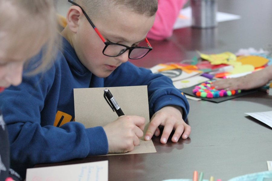 Było też pisanie życzeń w ręcznie robionych kartkach wielkanocnych. Kartki zostaną wysłane do podopiecznych ŚDS w Piasutnie oraz DPS w Spychowie.