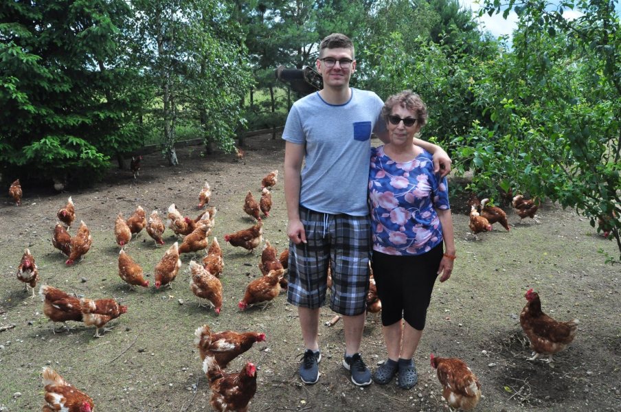 Dziadkowie właściwie nigdy nie mieli nic wspólnego z rolnictwem, poza tym, że babci tata, a mój pradziadek był rolnikiem. Mieszkali w Czarni, gdzie ten pradziadek prowadził skup jajek, więc pewnie hodowanie kur i ta produkcja to już uwarunkowanie od kilku pokoleń. Dziadek pracował w wielu miejscach, nawet w kopalni, babcia była nauczycielką. Właśnie w Kolonii, dokąd przyjechali w 1968 roku, uczyła matematyki. Swoją „przygodę” z kurami dziadkowie rozpoczęli już w 1989 roku, a ja – jako dzieciak – tej hodowli się przyglądałem, pomagałem... Jakoś tak zawsze byłem z tymi kurami związany, a one ze mną. Później dziadek poważnie zachorował i walka o jego zdrowie zdominowała życie rodzinne. Hodowla kur została zlikwidowana w 2016 roku. Przez te kolejne lata bardzo mi tych niosek brakowało. Podwórka wydawały się takie puste... I kiedy przyszedł czas, bym – już jako dorosły – zrobił coś z własnym życiem, uznałem, że będę robił to, co dziadkowie.
