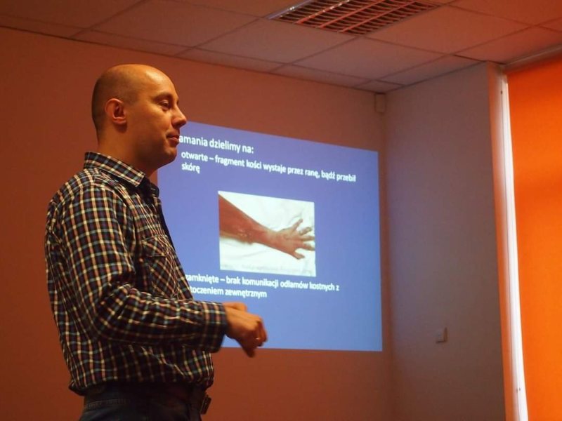 Zajęcia z pierwszej pomocy przedmedycznej prowadzę podczas szkoleń, organizowanych dla strażaków ochotników, ale też pomagam kolegom zawodowym, gdy przygotowują się do tzw. egzaminu recertyfikacji z zakresu kwalifikowanej pierwszej pomocy, bo obecnie takie kwalifikacje muszą mieć wszyscy zawodowi. Ale organizowałem też i prowadziłem szkolenia z takiej pierwszej pomocy dla cywili, głównie dla młodzieży ze szkół średnich. Także dla kadry na UWM...
