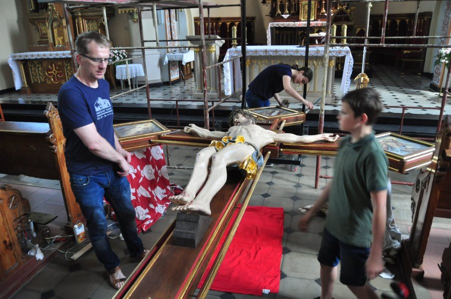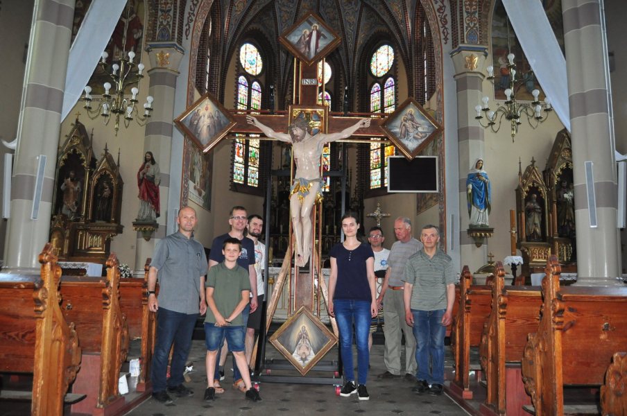 Tak, trafił do nas w czwartek, ale na razie jest ukryty. Myślę, że oficjalnie zostanie odsłonięty, i znajdzie się na swoim właściwym miejscu dokładnie 14 września podczas Święta Podwyższenia Krzyża. Krzyż waży ponad 350 kg, ma 4 metry wysokości i 3 szerokości. Sama figura pana Jezusa ma 162 centymetry. Bez wątpienia jest to dzieło sztuki. Do krzyża dołączone jest 9 obrazów. Jedna strona krzyża przedstawia to życie ziemskie Jezusa Chrystusa, zapowiedź męki, cierpienia... Druga strona przedstawia życie niebiańskie, po zmartwychwstaniu Chrystusa.