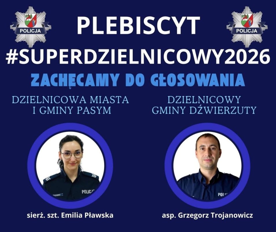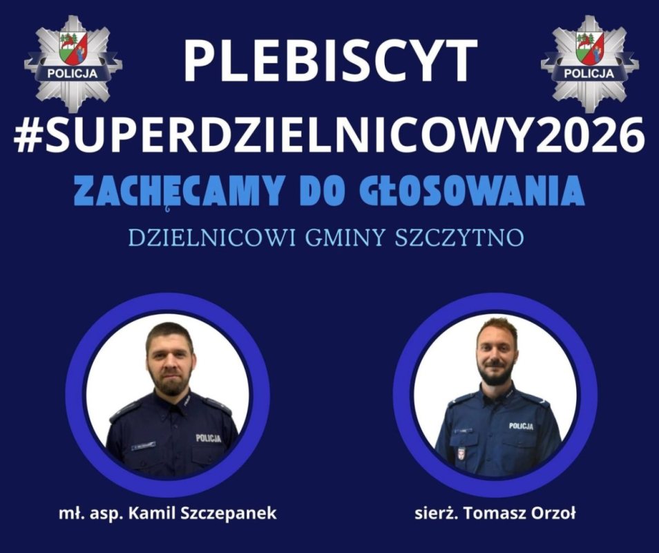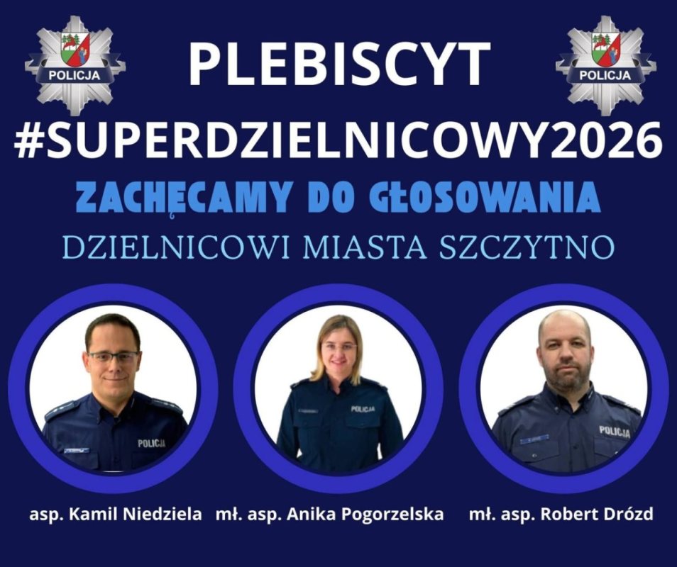 Ruszył plebiscyt #SuperDzielnicowy2026. Od 16 lutego mieszkańcy powiatu szczycieńskiego mogą oddać głos na swojego dzielnicowego. Głosowanie potrwa do 16 kwietnia. To mieszkańcy zdecydują, kto otrzyma tytuł.