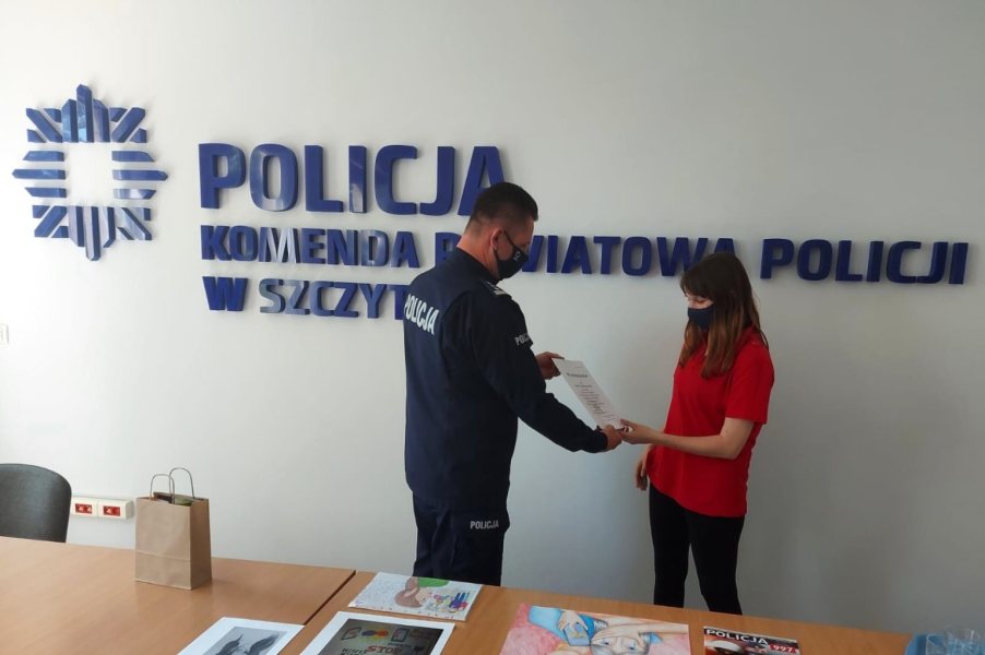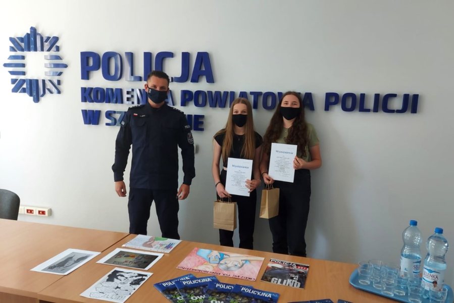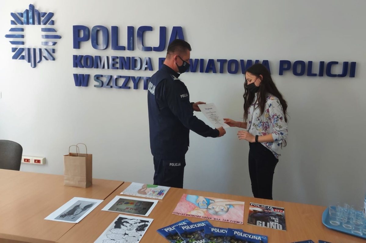 W trakcie spotkania laureatki miały również okazję zaprezentować swoje prace i opowiedzieć, czym się kierowały tworząc je, skąd czerpały inspiracje i co dokładnie chciały przekazać odbiorcom. Na zakończenie Kasia, Julia, Gabi, Patrycja, Julka oraz Amelia odebrały z rąk szefa szczycieńskiej komendy insp. Radosława Dracha, dyplomy oraz drobne upominki.