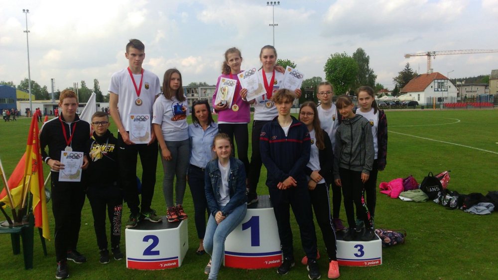 Nasza młodzież stawała 12 razy na podium, wygrywając 3 biegi, 6 razy stając na drugim miejscu oraz 3 razy na trzecim. Wszyscy byli bardzo zadowoleni ze swoich startów i z uśmiechami wracali do domu. 19 maja br. odbyły się Mistrzostwa Województwa Warmińsko-Mazurskiego w Lubawie, w których również wzięli udział (800 m: Kornelia Sokołowska – I miejsce, 400 m: Marcin Miłkowski – I miejsce, Deptuła Mateusz – II miejsce).