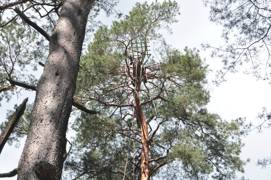 - Jest to praca na wysokości, często przy wietrze więc drzewo mocno się kołysze – mówi pan Michał, który wspólnie ze swoim kolegą montował gniazdo w czwartek. - Budowa gniazda i jego umieszczenie na szczycie drzewa to około 2-3 godziny pracy.