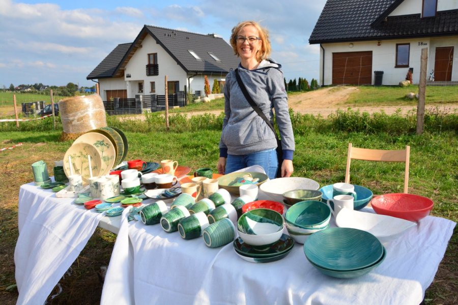 Jak już powiedziałam – przyjemność. Tę dają nam wycieczki, na które wyjeżdżamy, jeśli uda nam się pozyskać środki z zewnątrz. Uważamy bowiem, że jak się choćby na krótko z domu wyjedzie, tym chętniej do niego wraca. Poza tym albo głównie jednak staramy się o to, by organizować wydarzenia, w których mogą uczestniczyć wszyscy mieszkańcy wsi. Taką właśnie imprezą był sobotni, szczególny piknik, zorganizowany wspólnie z sołtysem i radą sołecką. Szczególny, bo był połączony z otwarciem tego miejsca rekreacyjnego z wiatą. Była „wstęga” upleciona z nawłoci, przecinana sierpem, jak na wieś przystało. Były konkursy, w tym nawet kulinarny, muzyka i w ogóle dużo fajnej, radosnej zabawy dla małych i dużych. Było wiele ciekawych stoisk, a wśród gości inne koła gospodyń wiejskich, nie tylko z naszej gminy. W otwarciu uczestniczył też wójt, któremu to miejsce zawdzięczamy.