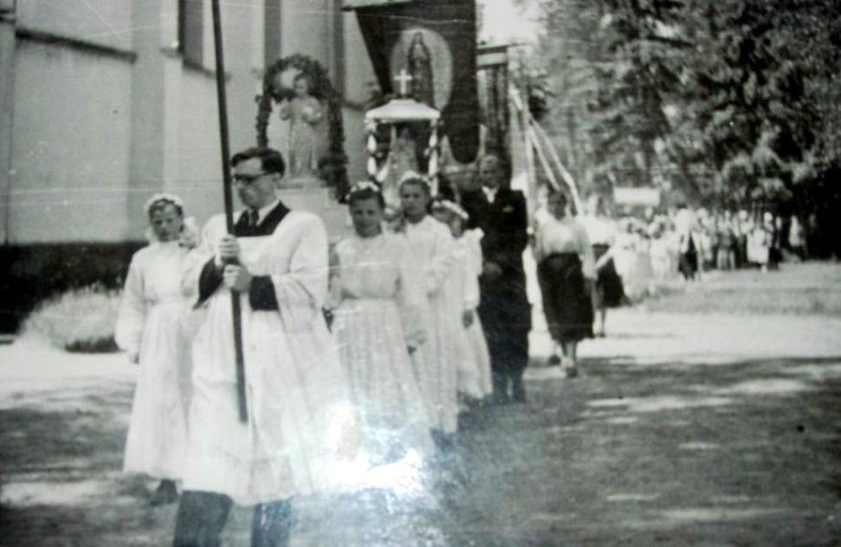 Procesja podczas misji w roku 1958. Fot. Z archiwum parafii.