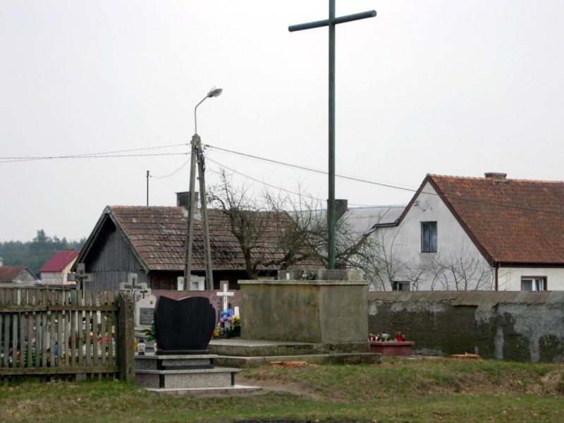 Ołtarz betonowy i krzyż żelazny z roku 1958 na cmentarzu w Lipowcu.