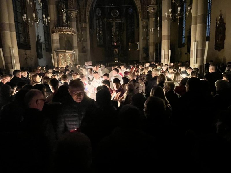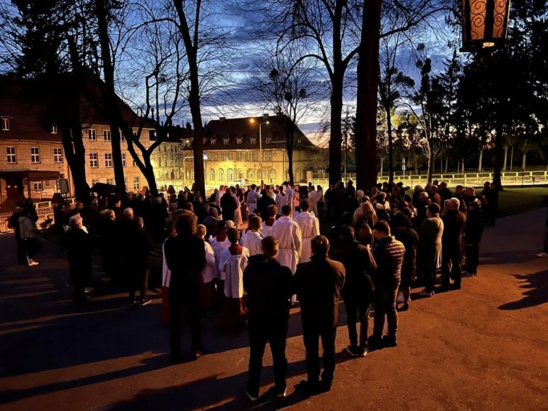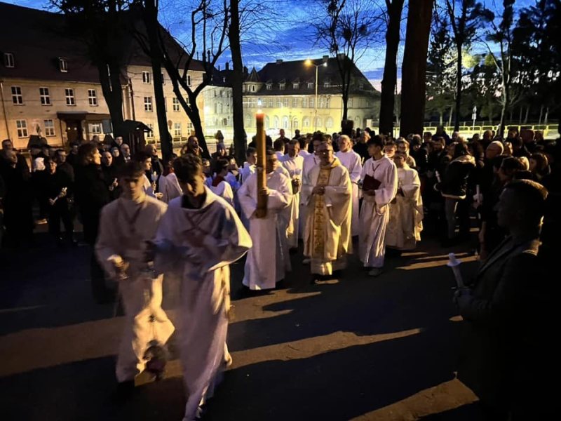 Przypomniał, że liturgia Wigilii Paschalnej rozpoczyna się po zmroku, co symbolizuje zwycięstwo światłości nad ciemnością.