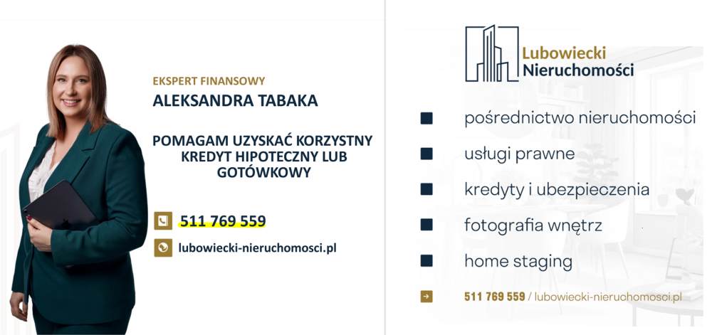 Promocja. Szukasz korzystnego kredytu hipotecznego na zakup wymarzonej nieruchomości? Zobacz, jak mogę Ci w tym pomóc. Lubowiecki Nieruchomości - Biuro Nieruchomości Zaprasza.