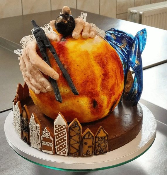 Na zdjęciu tort przygotowany przez Martę i Pawła pod okiem nauczycielek Małgorzaty Polak i Magdy Talarek - Słońce wstrzymane przez ręce Kopernika.