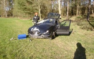 Samochodem jechały dwie osoby. Gdy ratownicy dotarli na miejsce zgłoszenia obie były poza pojazdem. Nie potrzebowały żadnej pomocy. Auto z opresji wydobyto wyciągarką samochodową. Solidnie uszkodzone zostało podwozie. Straty oszacowano na ponad 1 tys. zł. Z ustaleń ratowników wynika, że auto nadziało się na przeszkodę cofając.