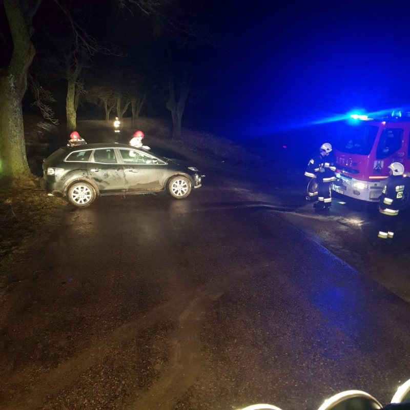 - Mazda xc7 zawisła na skarpie przydrożnego rowu – mówi kapitan Łukasz Wróblewski z KP PSP w Szczytnie.