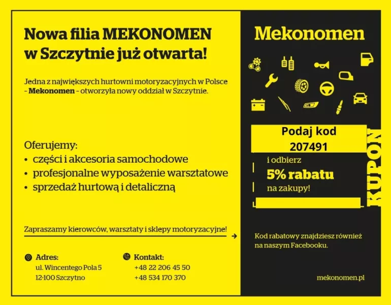 Jedna z największych sieci motoryzacyjnych w Europie – Mekonomen – działa także w Szczytnie, przy ul. Wincentego Pola 5. To marka z ponad pięćdziesięcioletnią tradycją, znana w Szwecji, Norwegii, Finlandii i Polsce, która oferuje nie tylko części i akcesoria samochodowe, ale też kompleksowe wsparcie dla warsztatów i kierowców.