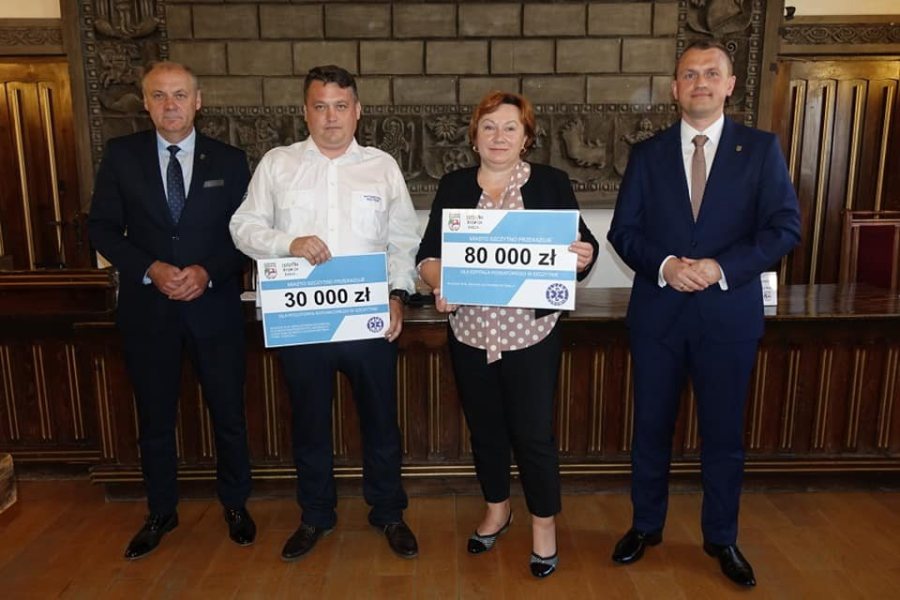 Symboliczne czeki trafiły w wtorek do Pogotowia Ratunkowego w Szczytnie, Szpitala Powiatowego oraz do strażaków. Przekazali je tym instytucjom Krzysztof Mańkowski, burmistrz Szczytna i Tomasz Łachacz, przewodniczący Rady Miejskiej.