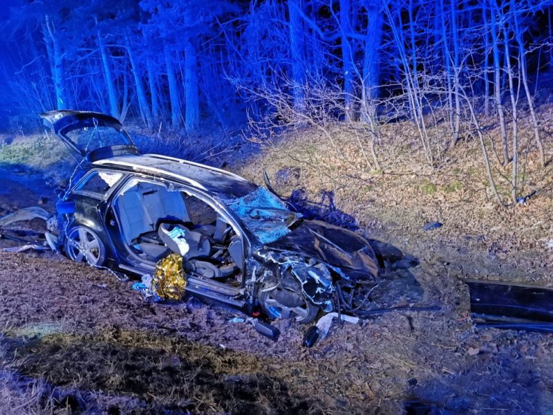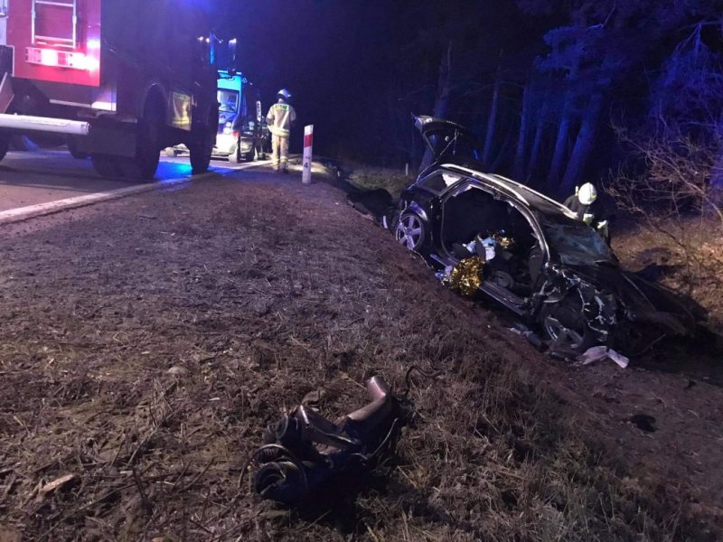 Do tragicznego wypadku doszło pod Wielbarkiem. Audi roztrzaskało się o drzewo. Jego elementy rozrzucone były na odcinku kilkudziesięciu metrów. W wypadku zginał na miejscu 20-letni Michał. 22-letni Artur, kierowca auta walczy, o życie. W ciężkim stanie jest też rodzeństwo Karolina (18 l.) i Sylwester (20 l.)