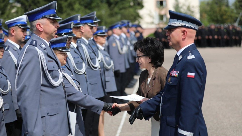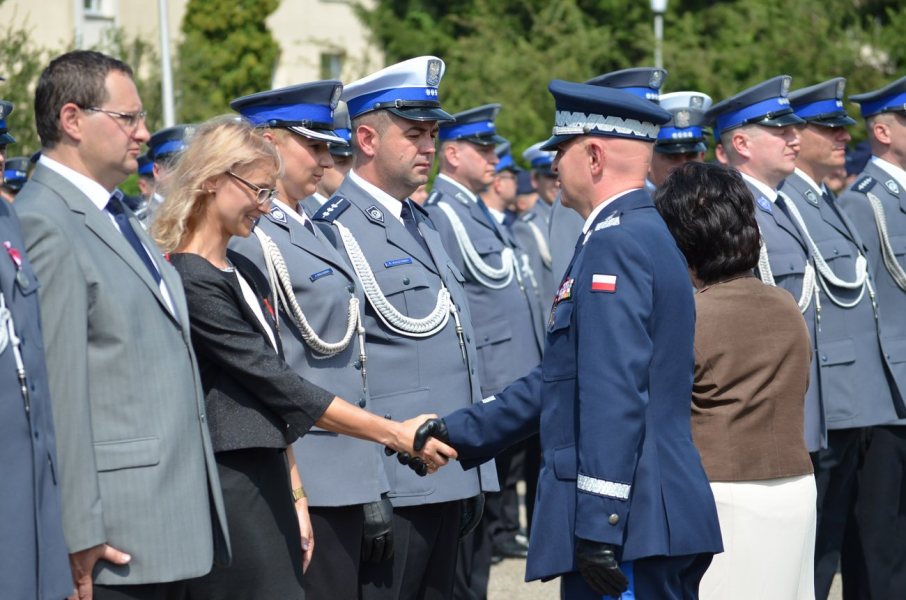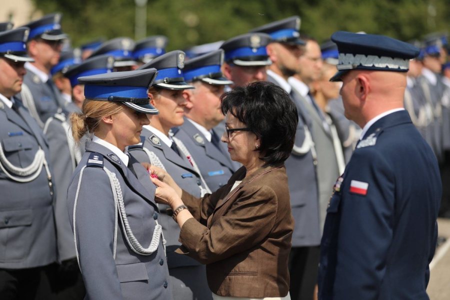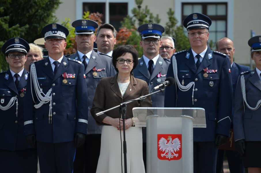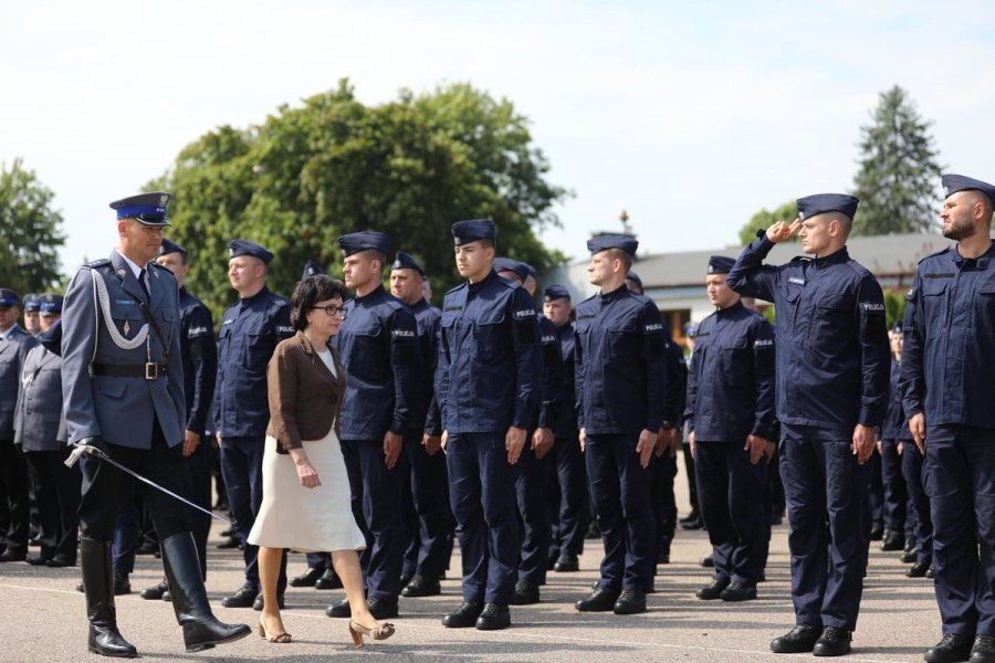Jako pierwsza głos zabrał Pani Elżbieta Witek – Minister Spraw Wewnętrznych i Administracji, która wyraziła słowa gratulacji oraz podziękowania dla funkcjonariuszy za ich codzienną służbę. Pani Minister podziękowała również kadrze, policjantom i pracownikom Wyższej Szkoły Policji w Szczytnie, nie tylko za przekazywanie wiedzy i umiejętności niezbędnej do pełnienia codziennej służby, ale również za przekazywanie najważniejszych wartości i kształtowanie patriotycznych postaw.