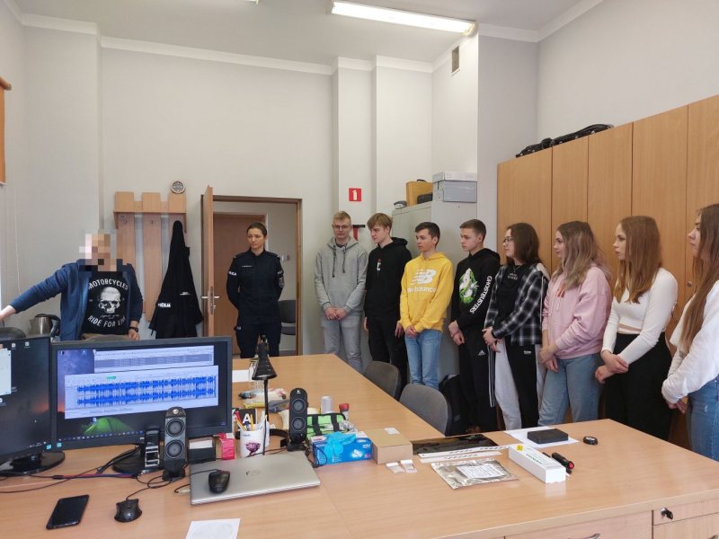 Podczas pobytu w komendzie i przyglądaniu się specyfiki pracy w Policji, młodzi ludzie mogli zweryfikować wyobrażenia o zawodzie policjanta.
